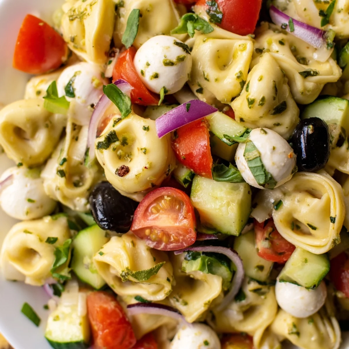 Yes! Rinse the cooked tortellini under cold water immediately after draining. This stops the cooking process, prevents sticking, and cools the pasta quickly for the salad.